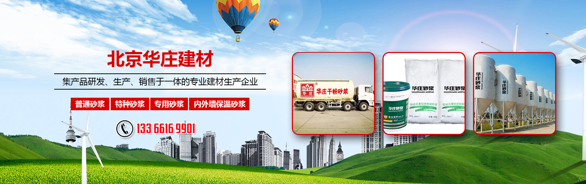 北京華莊建材有限責(zé)任公司主營(yíng)干混砂漿、專(zhuān)用砂漿、內(nèi)外墻保溫砂漿、特種砂漿等4個(gè)系列30多種產(chǎn)品,歡迎您的咨詢!13366169901 01081288690 北京華莊建材有限責(zé)任公司主營(yíng)干混砂漿、專(zhuān)用砂漿、內(nèi)外墻保溫砂漿、特種砂漿等4個(gè)系列30多種產(chǎn)品,歡迎您的咨詢!13366169901 01081288690